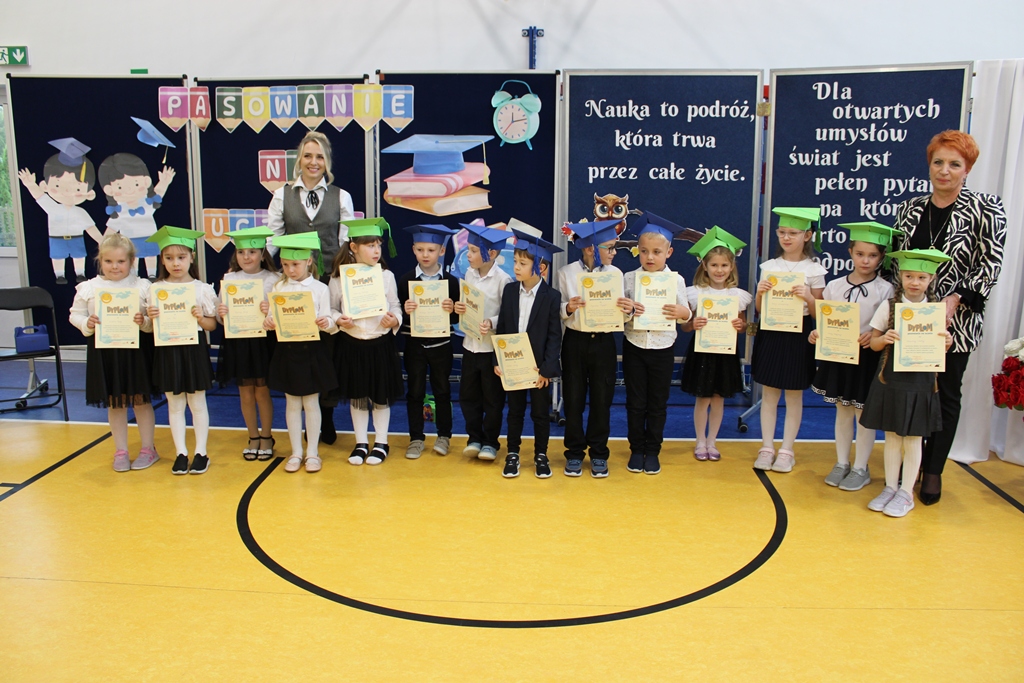 W dniu 10 października 2025 r. odbyła się w naszej szkole uroczystość ślubowania i pasowania na ucznia klasy pierwszej oraz akademia z okazji Dnia Edukacji Narodowej. Ślubowanie i pasowanie na ucznia to zdecydowanie jeden z najważniejszych momentów związanych z edukacją. W tym ważnym dniu towarzyszyli pierwszoklasistom rodzice, dyrekcja, nauczyciele oraz koleżanki i koledzy ze starszych