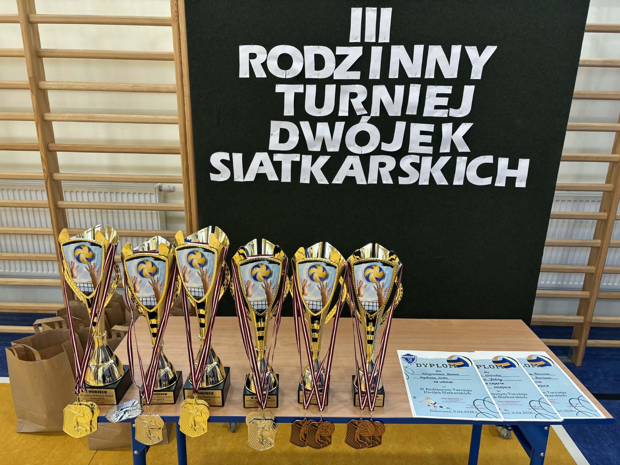 W dniu 11.04.2026 r. odbył się w naszej szkole III Rodzinny Turniej Dwójek Siatkarskich. Zawody przebiegły w miłej, sportowej atmosferze, gromadząc ucznióworaz ich bliskich do wspólnej rywalizacji i zabawy. Zawody rozegrano w dwóch kategoriach wiekowych:kategoria: klasy IV- VII miejsce – Lena Pudło i Mieczysław Kulka,II miejsce – Julia i Marcin Tomczyk,III miejsce – Szymon i
