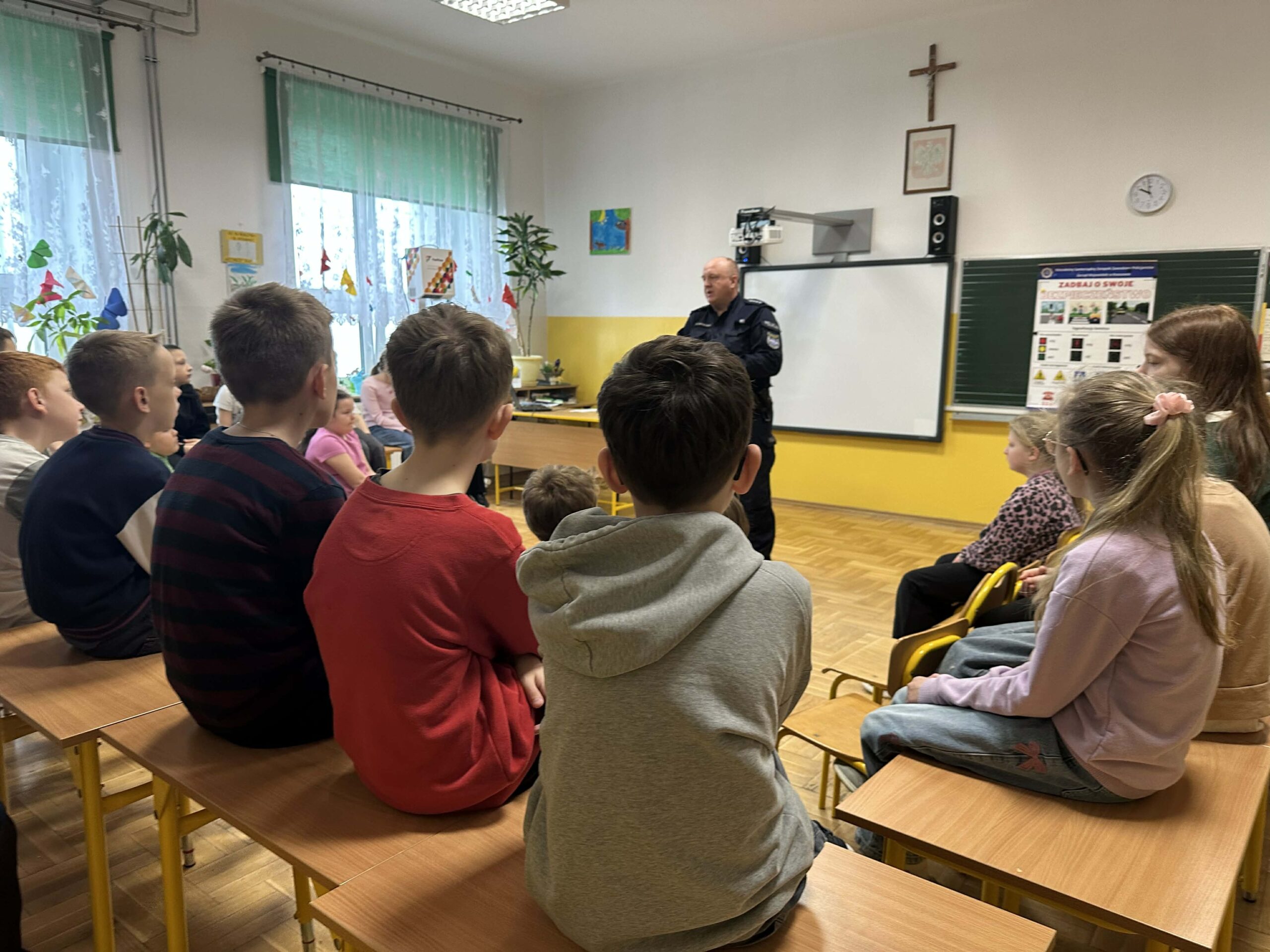 W dniu 16.04.2026 r. odbyło się spotkanie profilaktyczne z funkcjonariuszami KP Policji w Łańcucie, w którym uczestniczyły dzieci z oddziału przedszkolnego oraz uczniowie Szkoły Podstawowej Nr 2 im. Stefana Mierzwy w Rakszawie. Celem spotkania było zwiększenie świadomości dzieci i uczniów w zakresie bezpieczeństwa w życiu codziennym. Podczas zajęć policjanci omówili podstawowe zasady bezpiecznego poruszania się