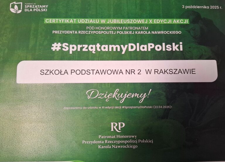 15.10.2025 r. w naszej szkole odbyła się akcja „Sprzątanie Świata 2025” w ramach 32. edycji ogólnopolskiej kampanii pod hasłem „W naturę z kulturą”. Celem było zachęcenie do dbania o czystość środowiska, ale także do kulturalnego zachowania podczas obcowania z przyrodą,…