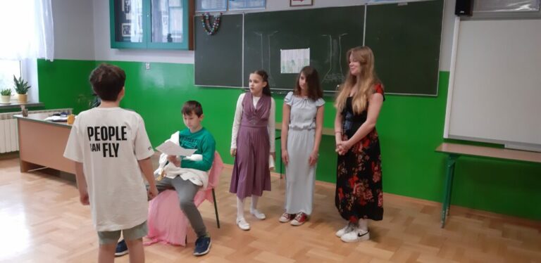 Uczniowie klasy V zaprezentowali ostatnio na lekcjach j.polskiego inscenizacje poznanych wcześniej mitów. Samodzielnie opracowali scenariusz, przygotowali kostiumy i rekwizyty. Piątoklasiści przedstawili następujące mity: „Demeter i Kora”, „Prometeusz”, „Helios i Faeton”. Młodzi aktorzy wykazali się dużą pomysłowowością i spisali się znakomicie.