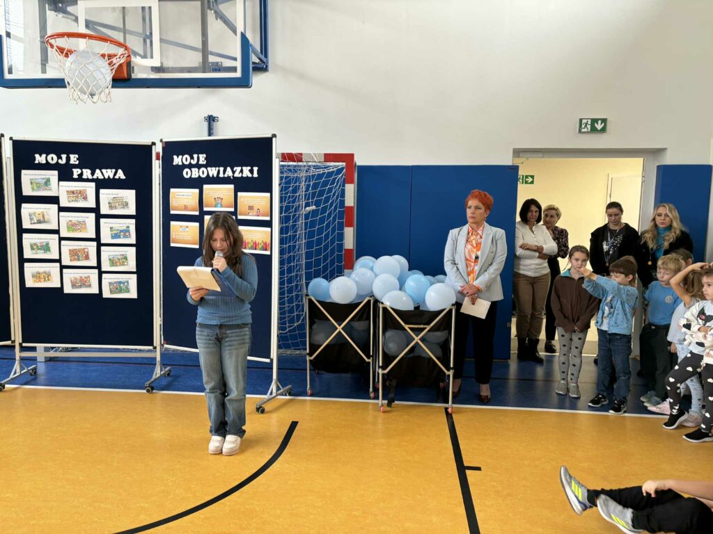 27.10.2025 r. w rocznicę uchwalenia Konwencji Praw Dziecka w naszej szkole zorganizowano apel, mający na celu przedstawienie uczniom praw zawartych w tym dokumencie. Uczniowie wraz nauczycielami przebrani na niebiesko przeszli do sali gimnastycznej, gdzie przewodnicząca SU Maja Rogowska odczytała prawa dziecka. Na zakończenie uczniowie z niebieskimi balonami utworzyli korowód i trzymając się za ręce powrócili do klas.