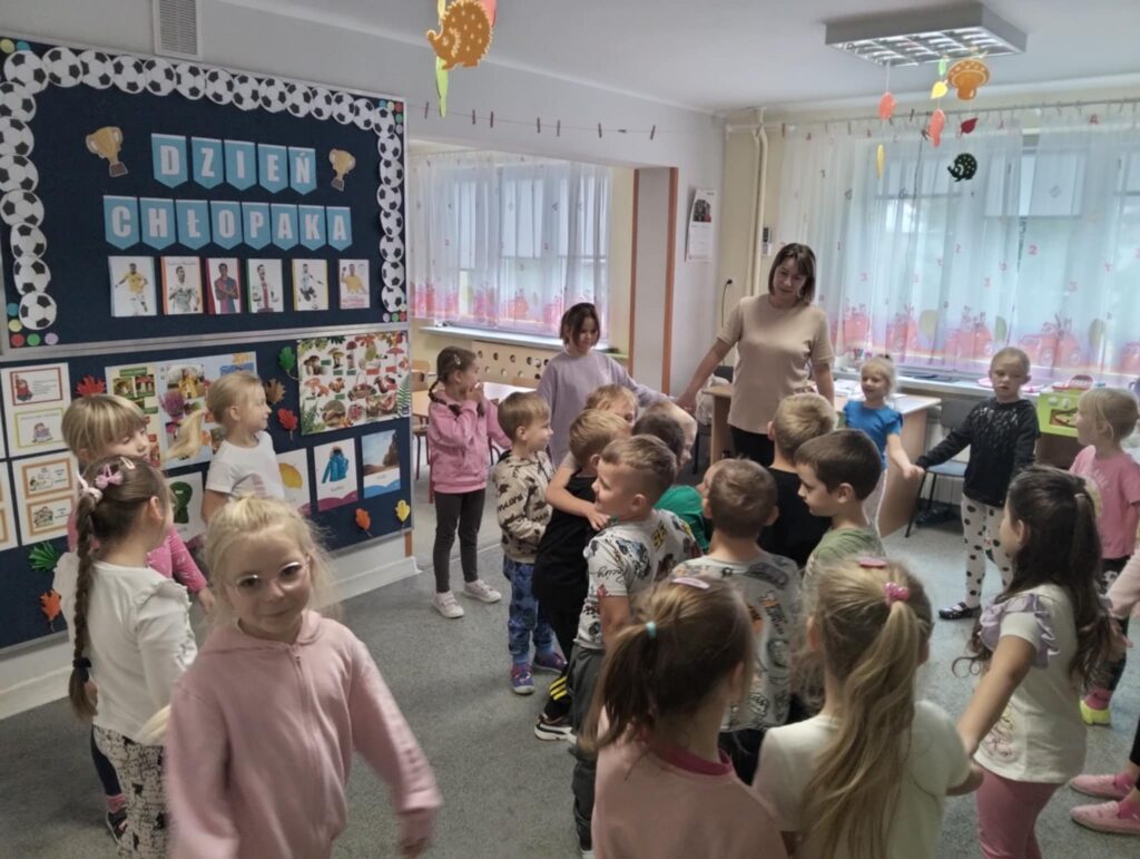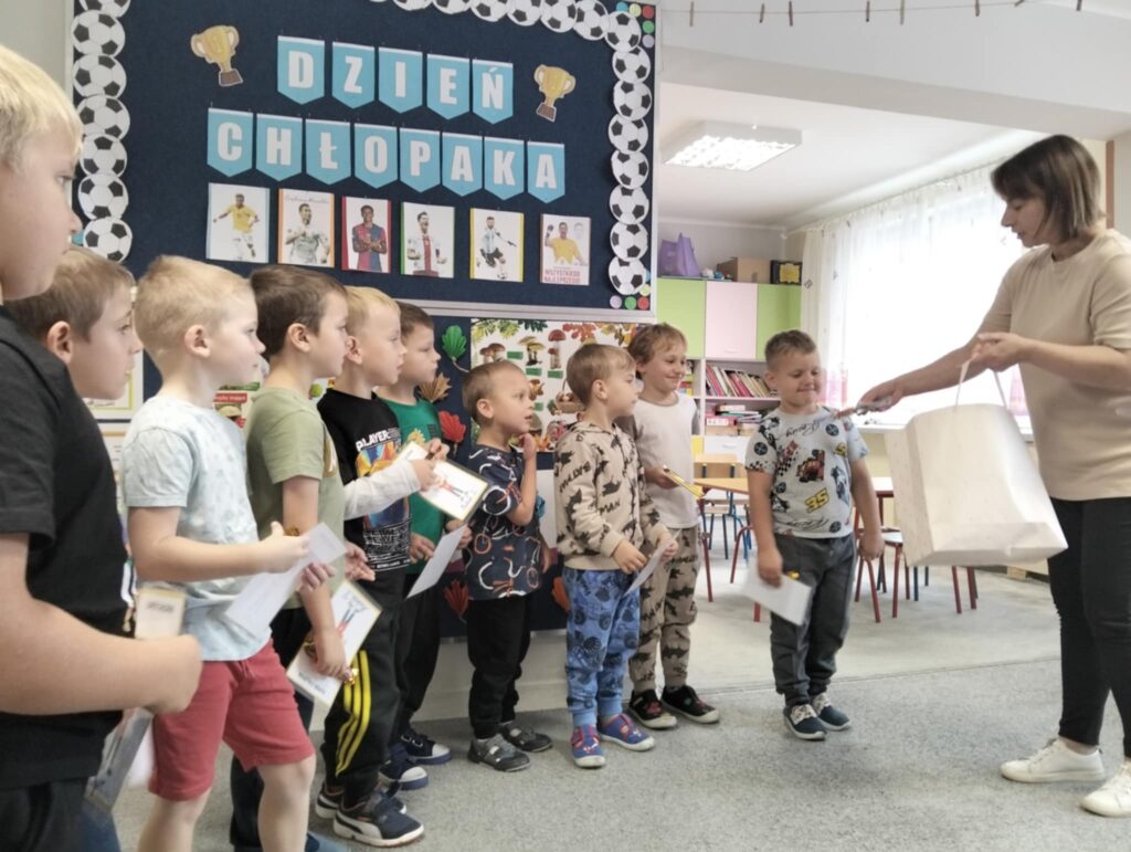 W tym dniu dzieci uczestniczyły w zabawach sportowych z użyciem piłki. To była dla chłopców ogromna radość. Każdy z nich otrzymał pamiątkowy dyplom, słodkości oraz zdjęcie ulubionego piłkarza. Życzymy naszym małym mężczyznom wielu sportowych sukcesów.