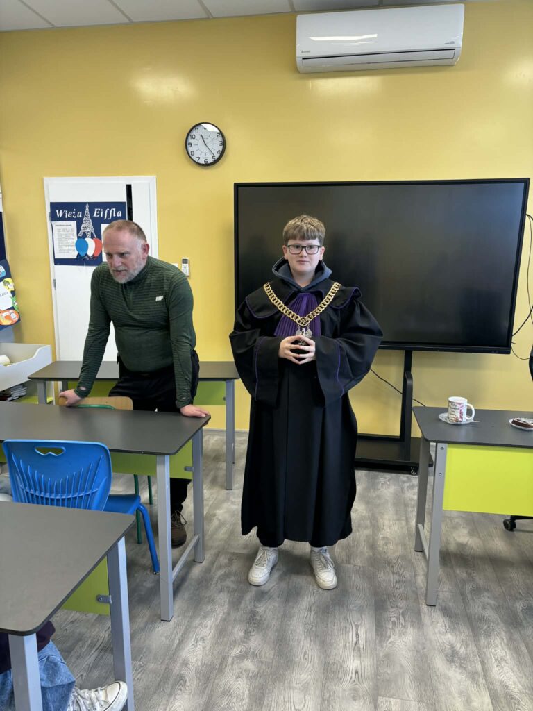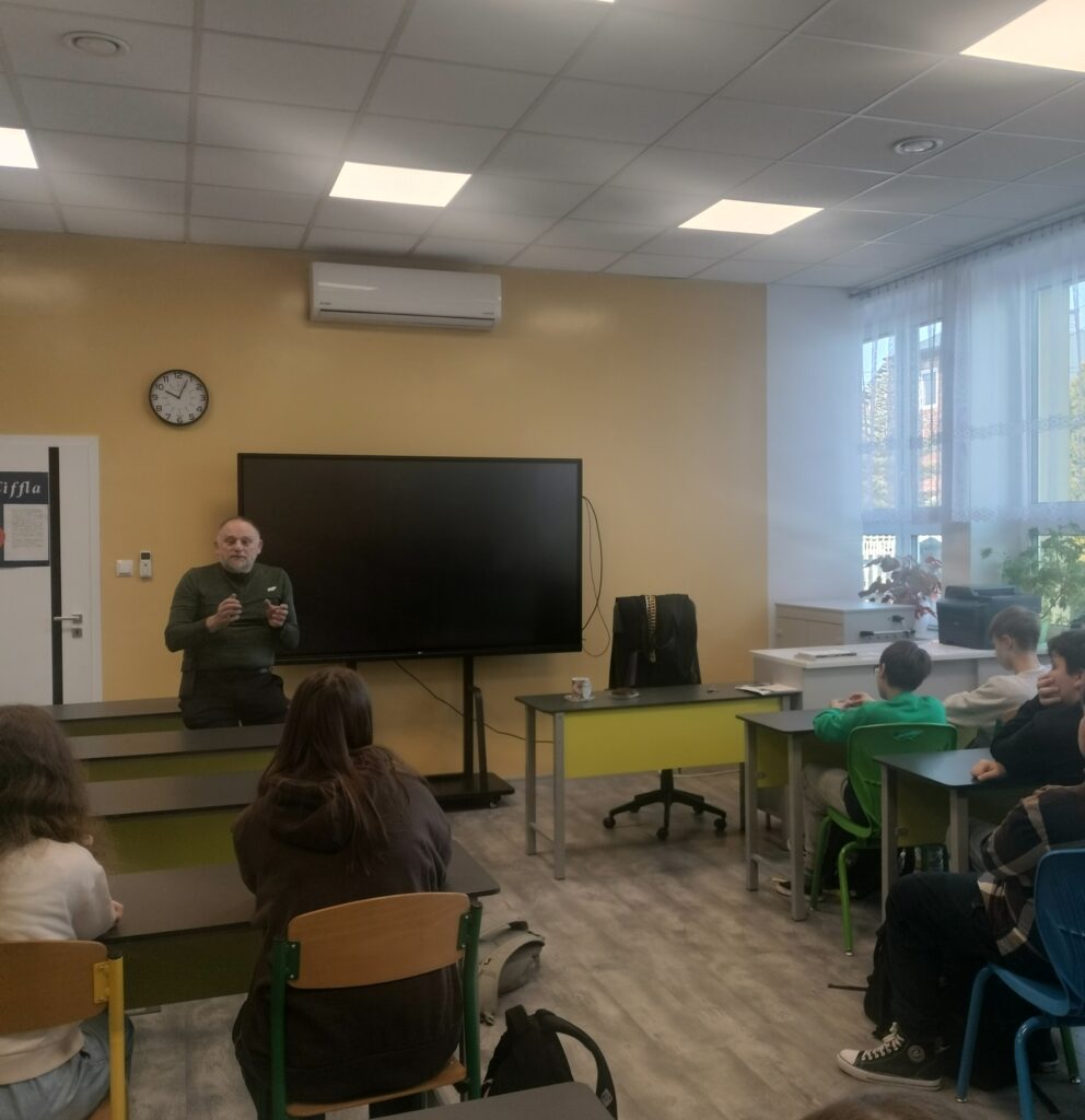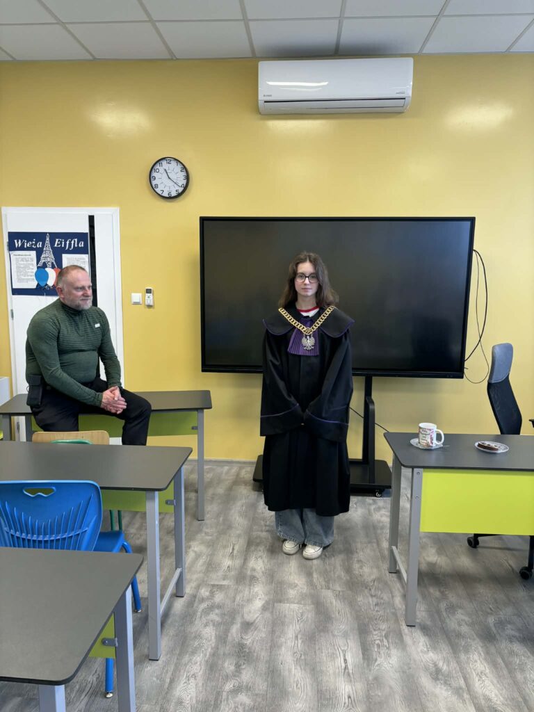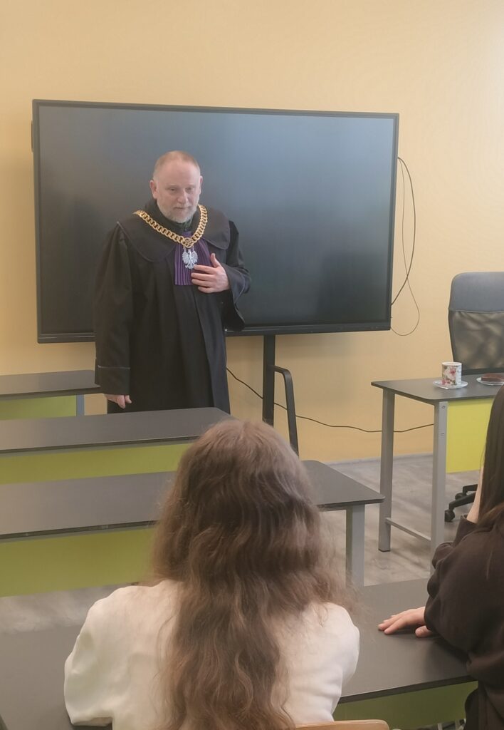 Podczas spotkania sędzia opowiedział o swojej pracy, drodze do zawodu oraz o tym, jak wygląda przebieg rozprawy sądowej. Uczniowie mieli również okazję zadać pytania dotyczące odpowiedzialności prawnej, codziennej pracy w sądzie oraz roli prawa w życiu społecznym.