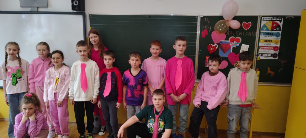 10 lutego 2026r. w naszej szkole odbył się wyjątkowy Dzień Kolorów, który wprowadził mnóstwo radości i pozytywnej energii. Każda klasa przyszła do szkoły ubrana w jeden, wcześniej wylosowany kolor. Dzięki temu szkolne korytarze wypełniły się barwami, a uczniowie chętnie angażowali się w zabawę.