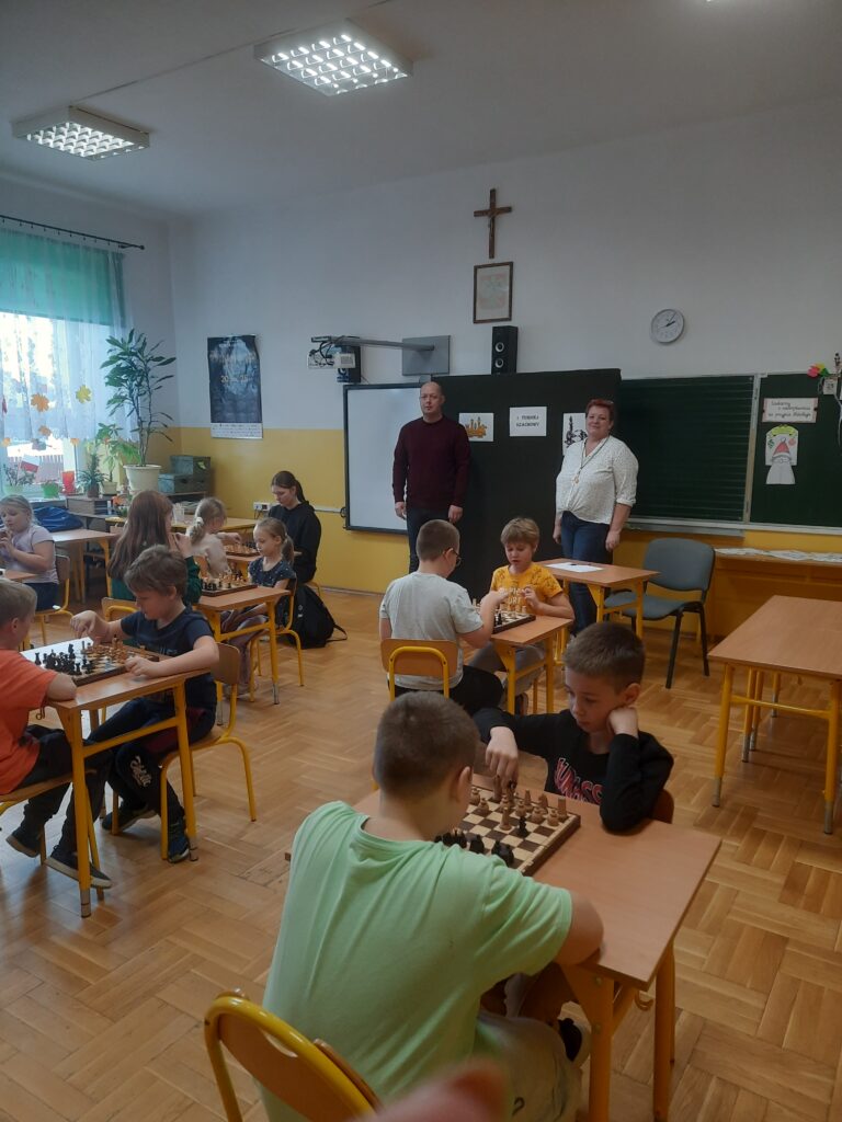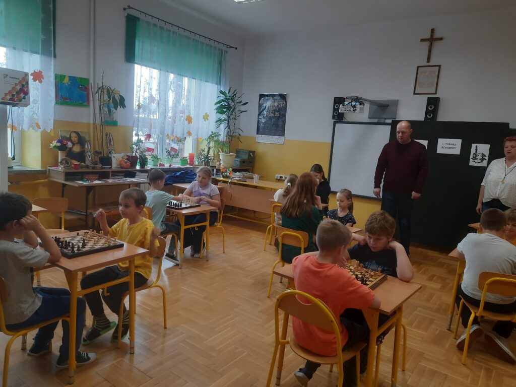 W dniu 25 listopada 2025 r. dobył się pierwszy z czterech  Turniejów Szachowych, do którego zgłosiło się 15 zawodników ( 15 zawodników z klas 1-3 oraz 2 zawodniczki z klas 4 -8).