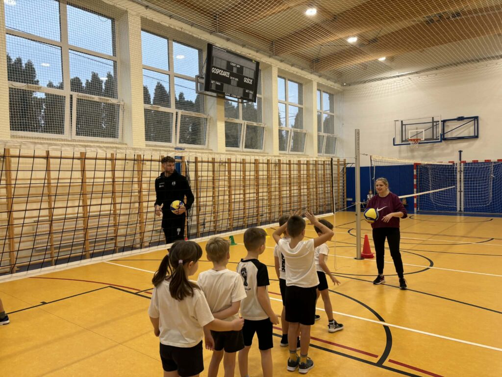 Podczas zajęć dzieci miały okazję uczestniczyć w rozgrzewce przygotowanej przez profesjonalnego sportowca, a następnie spróbować swoich sił w prostych ćwiczeniach z piłką siatkową – odbiciach, oraz krótkich zabawach ruchowych rozwijających koordynację. Zawodnik opowiadał także o swojej sportowej drodze, znaczeniu regularnych treningów i zasadzie fair play.