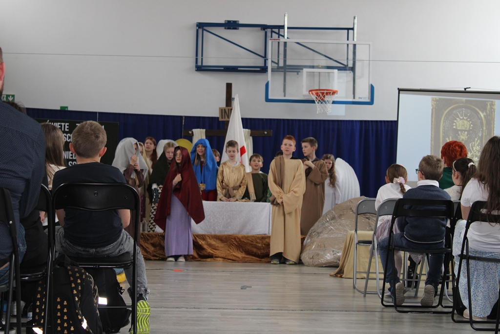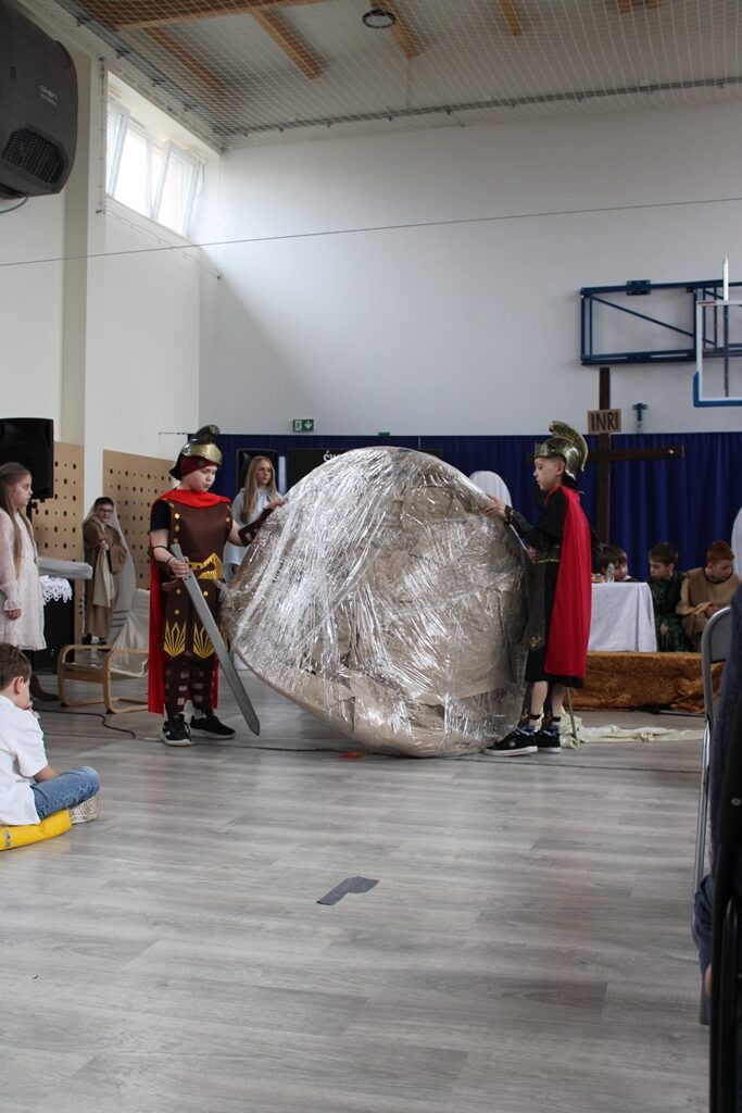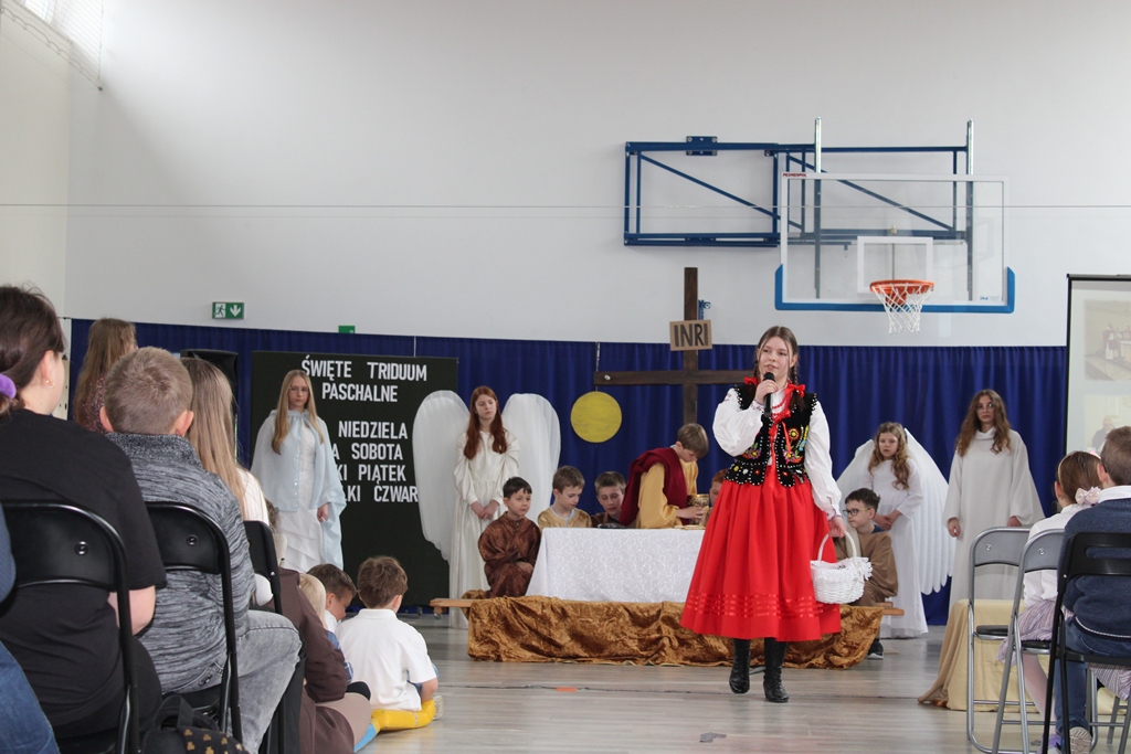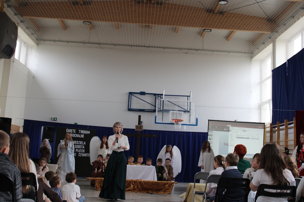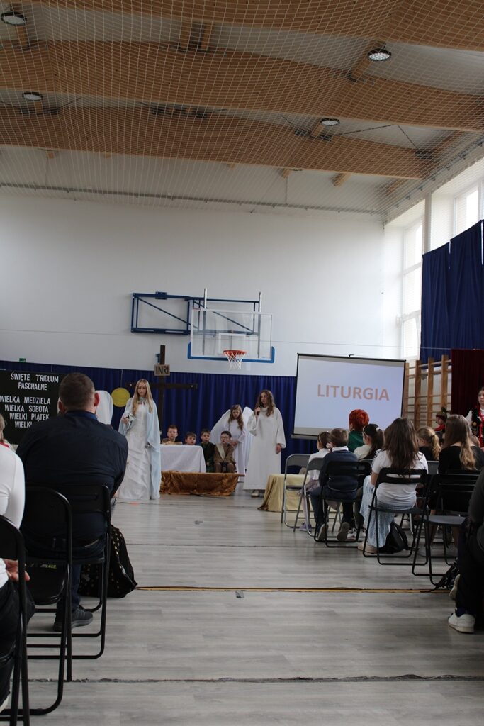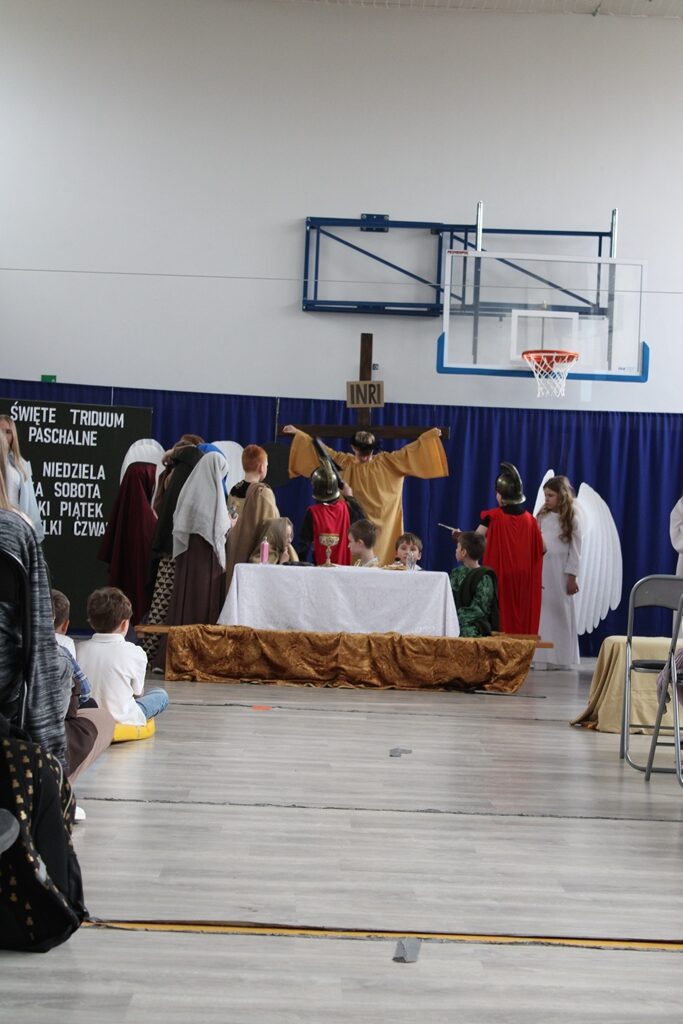 31.03.2026 r. w naszej szkole odbyła się premiera wyjątkowej opowieści „Święte Triduum Paschalne”. To niezwykłe wydarzenie pozwoliło nam wspólnie przeżyć i lepiej zrozumieć najważniejsze dni w roku liturgicznym – od Wielkiego Czwartku aż po radosne Zmartwychwstanie Pana Jezusa. Uczniowie w piękny i poruszający sposób ukazali historię, liturgię oraz tradycje związane z tym świętym czasem. Młodzi aktorzy wcielili się w wiele ról, tworząc niezapomnianą atmosferę refleksji i zadumy.