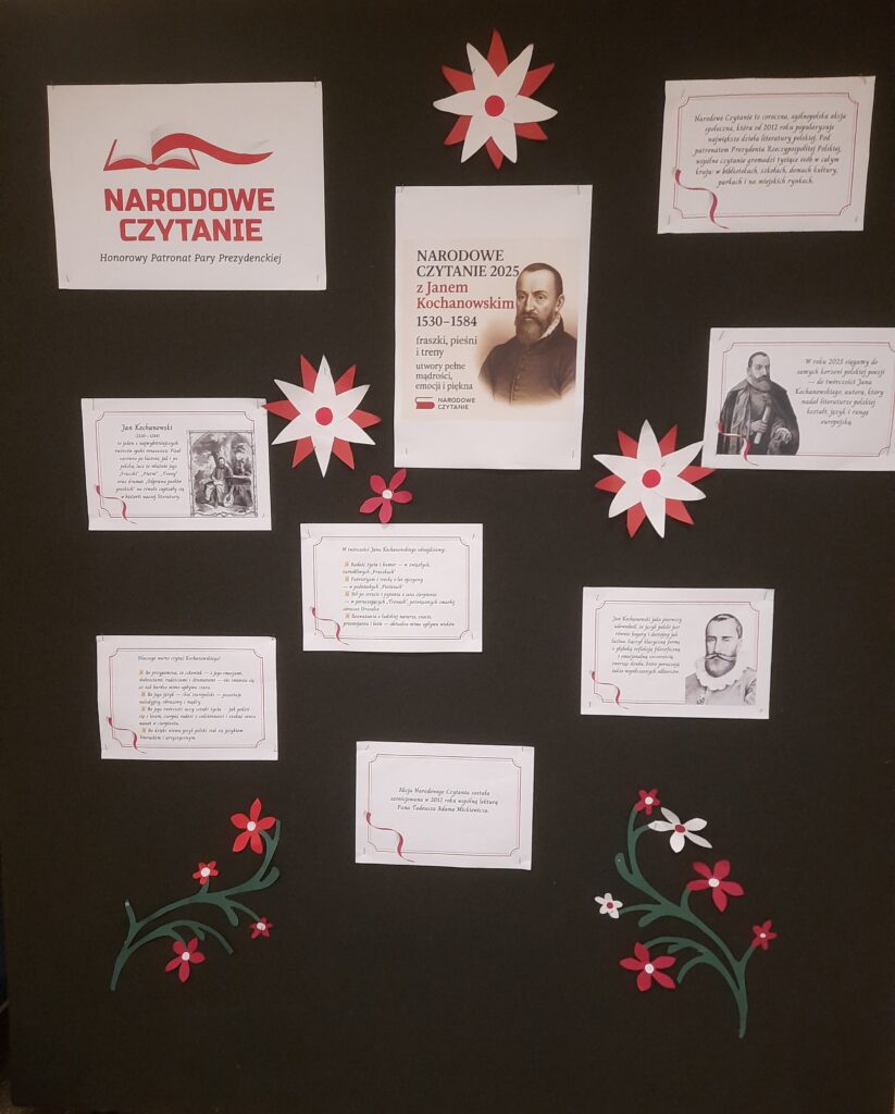 W poniedziałek 8 września 2025 r. uczniowie kl. IV – VIII włączyli się w akcję Narodowego Czytania, której patronuje Para Prezydencka. Podstawowym celem przedsięwzięcia jest popularyzacja czytelnictwa, zwrócenie uwagi na potrzebę dbałości o polszczyznę oraz wzmocnienie poczucia wspólnej tożsamości. W tym roku wybór padł na twórczość Jana Kochanowskiego. Jan z Czarnolasu w swoich utworach mówił o sprawach najważniejszych: o miłości, nadziei, śmierci i sile słowa. Dzięki niemu uczymy się, że literatura nie starzeje się, a jej piękno i mądrość towarzyszą nam przez pokolenia.