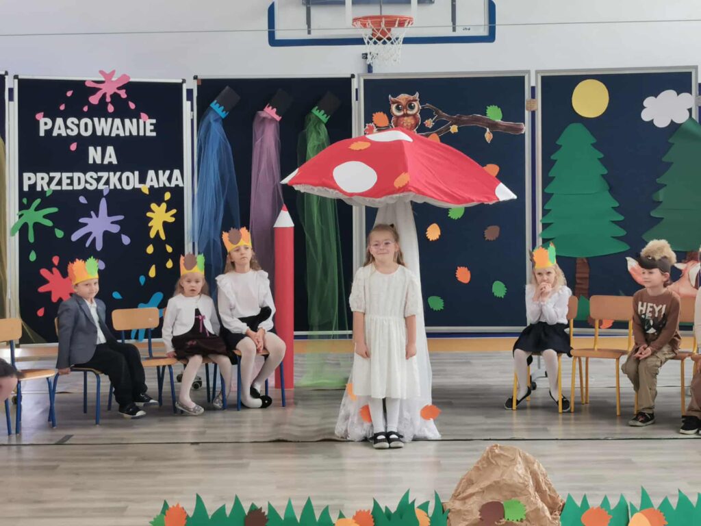 29.10.2025 roku odbyło się Pasowanie na Przedszkolaka. Dzieci przedstawiły opowieść o przyjaźni i wzajemnej życzliwości. „Bo tak dobrze przyjaciół swoich mieć i codziennie wesoło bawić się. Szukać przygód tu i tam, w bajki wierzyć też, bo tak dobrze przyjaciół swoich mieć….”