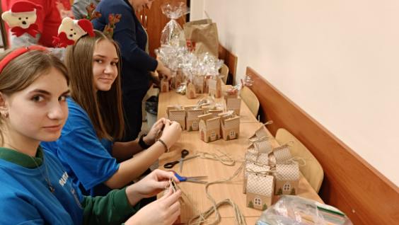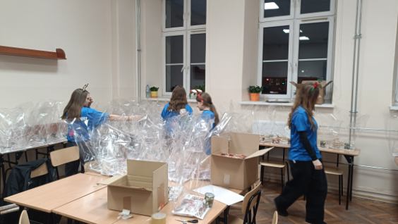 To hasło towarzyszyło nam w tym roku trakcie prac przygotowawczych do Finału Szlachetnej Paczki  Rejonu Łańcut. Włączyły się do nich przedstawicielki Szkolnego Koła Wolontariatu oraz klasa III  naszej szkoły. Uczennice klasy VIII przyklejały  paczkowe plakaty i znaczki na ścianach  korytarzy magazynu, ozdabiały prezenty dla darczyńców i pomagały kompletować dla nich drobne upominki od wolontariuszy. Po raz pierwszy mogły zobaczyć jak wygląda przygotowanie magazynu Szlachetnej Paczki Rejonu Łańcut w I LO – powstawanie kącika kawiarnianego, ścianki z balonami do robienia zdjęć z darczyńcami, ubieranie choinek, zawieszanie flag. Nie miały pojęcia jak wiele osób uczestniczy w tym dziele i ile to wymaga poświecenia własnego czasu wolontariuszy. Klasa III przygotowała drewniane czerwone zawieszki z logo Szlachetnej Paczki, które ozdobiły choinki w magazynie i jako drobny prezent sprawiły radość darczyńcom.