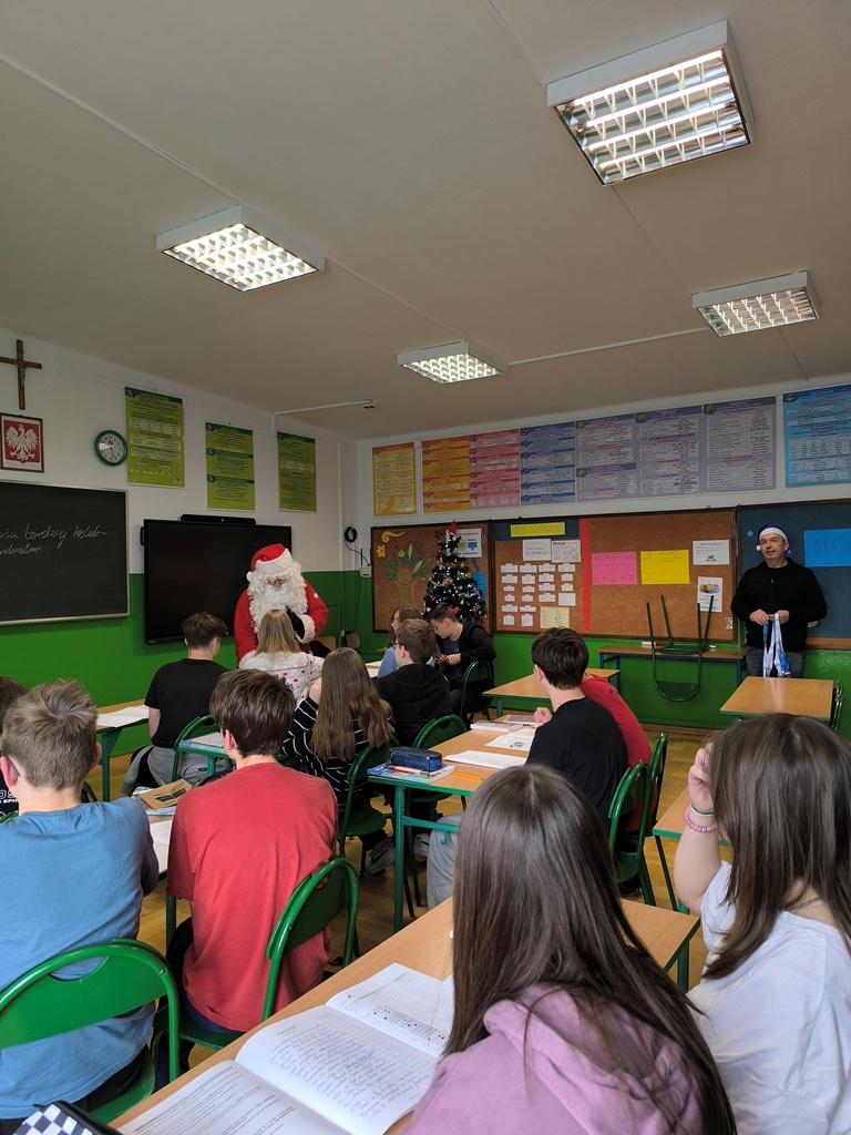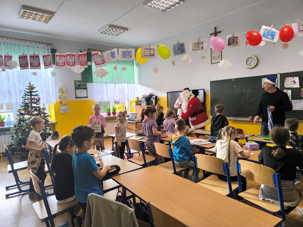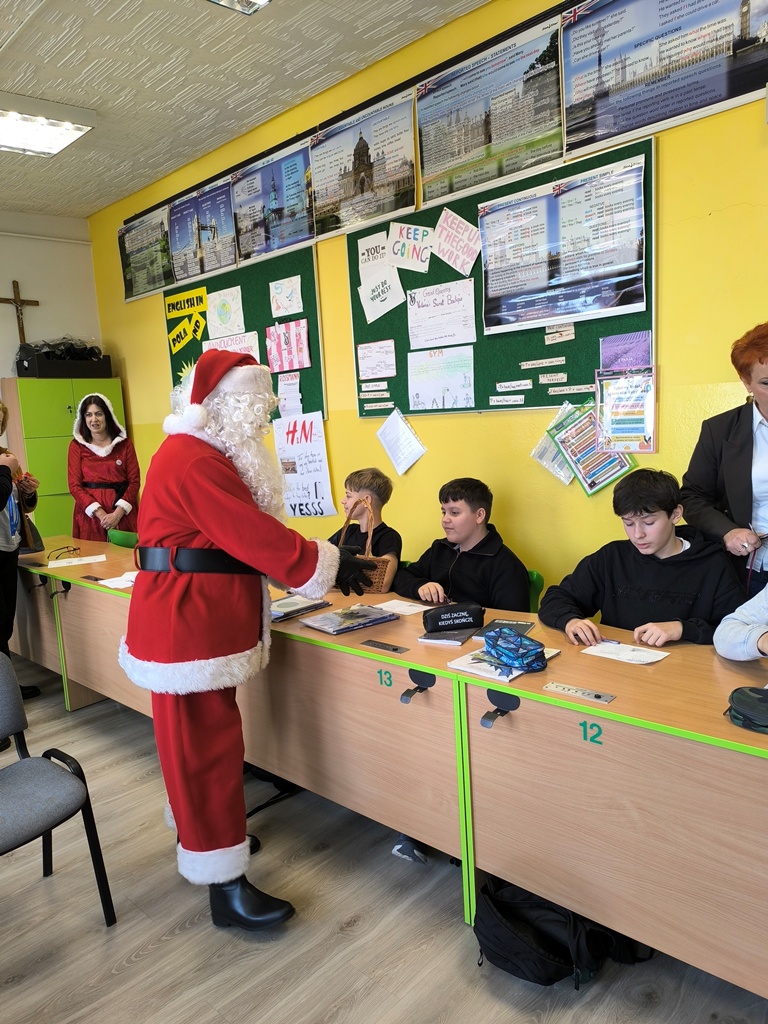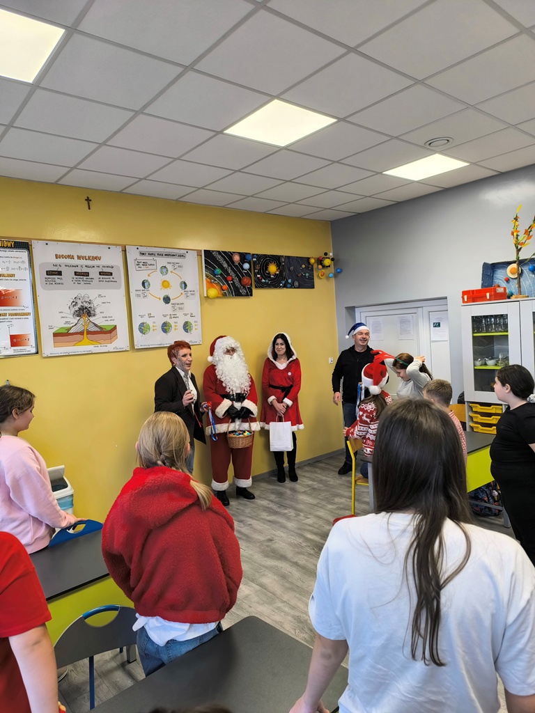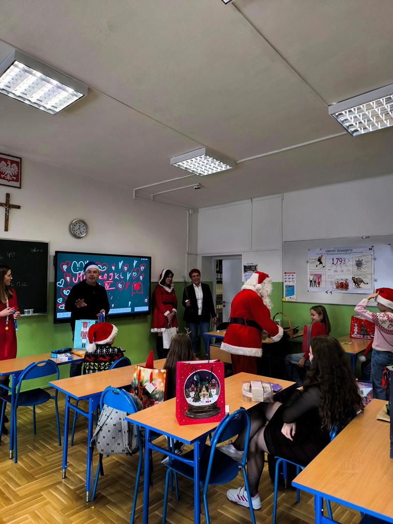 Podczas wizyty Mikołaj wraz z towarzyszami przekazali naszym uczniom oraz pracownikom szkoły ciepłe, świąteczne życzenia, wprowadzając wszystkich w radosny, bożonarodzeniowy nastrój. Nie zabrakło również drobnych upominków, które wywołały uśmiechy na twarzach dzieci.